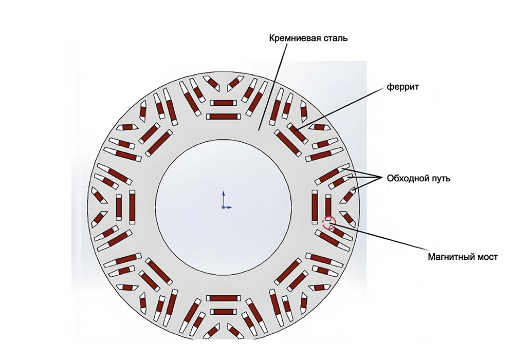 Дополнительное преимущество IPM-конструкции связано с так называемыми магнитными мостами в роторе. Эти стальные перемычки создают альтернативный путь для магнитного потока. Когда контроллер подаёт ток ослабления, часть магнитного потока проходит через эти мосты и замыкается внутри ротора, не выходя полностью в воздушный зазор. В результате эффективный поток уменьшается быстрее, а требуемый ток слабее. Одновременно стальная структура ротора частично защищает магниты от сильного размагничивающего поля, что снижает риск необратимого размагничивания. Для промышленного оборудования это серьёзное преимущество, особенно если привод работает в тяжёлых условиях, например на химических предприятиях или в шахтах, где устанавливается электродвигатель взрывозащищенный асинхронный или другие специальные типы машин. Именно поэтому многие инженеры сегодня рассматривают внутреннюю конструкцию ротора как более универсальное решение для широкого диапазона скоростей.